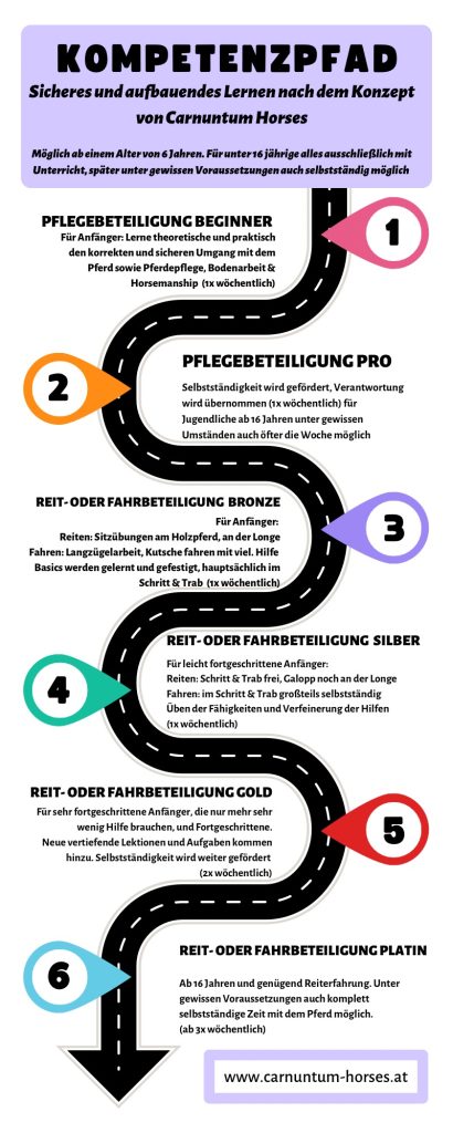- Der Fokus liegt auf Reiten/Fahren lernen und seine Fähigkeiten stetig zu verbessern